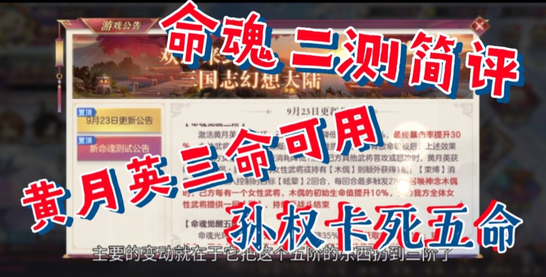 【三国志幻想大陆】命魂二测简评,黄月英三命可用,孙权卡死五命