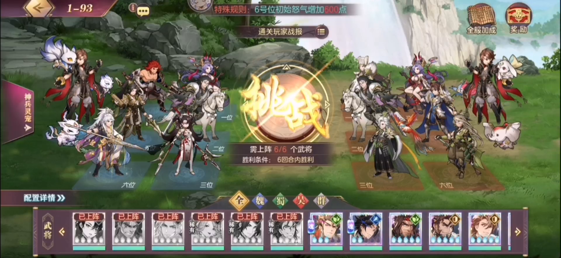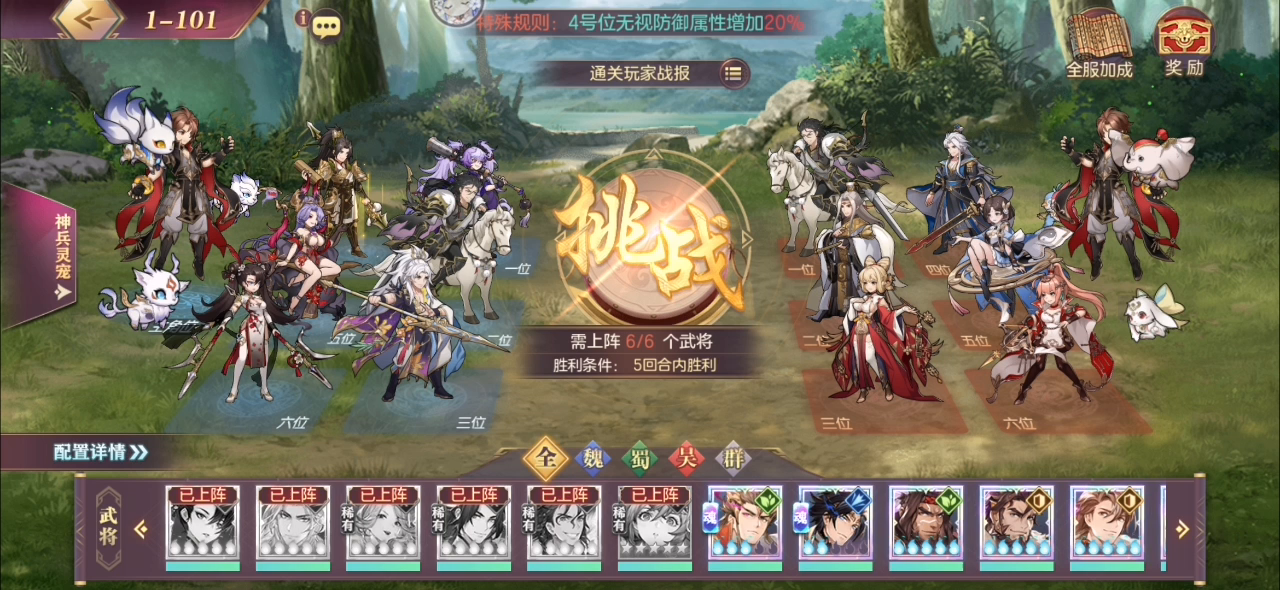 阵容总结: 1v1 马超 2v2 马超 吕绮玲 3v3 马超 吕绮玲 姜维 4v4 马超 吕绮玲 姜维 公孙瓒 6v6 公孙瓒 好人曹 华佗 果子 马良 姜维