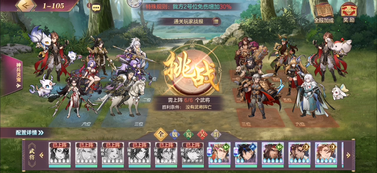 这次是连着两次一块儿过的,这些图应该都没有什么压力,如果中间有个别遇到有压力的小伙伴儿,可以随时私聊我,或者在视频下方留言。 到目前为止,主要的杀伤力在马超和姜维,其他基本看情况,组合羁绊和站位就好