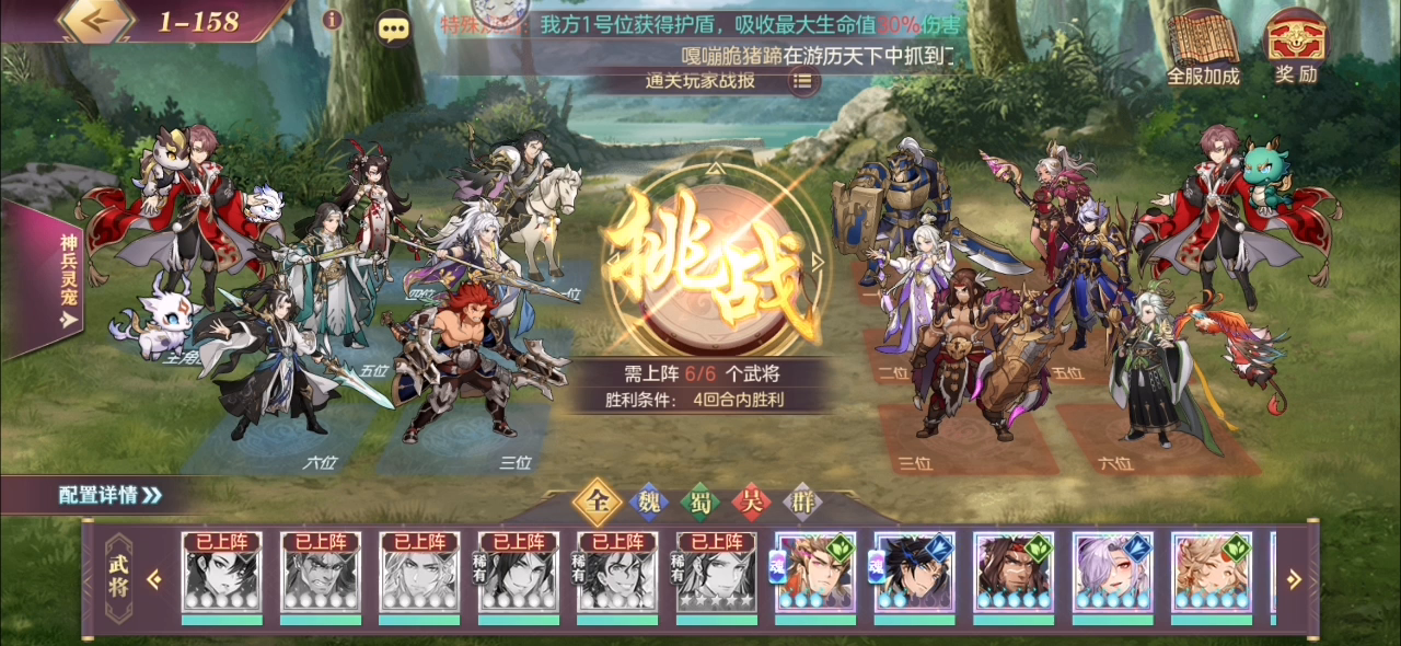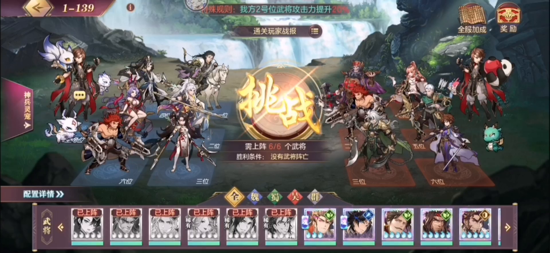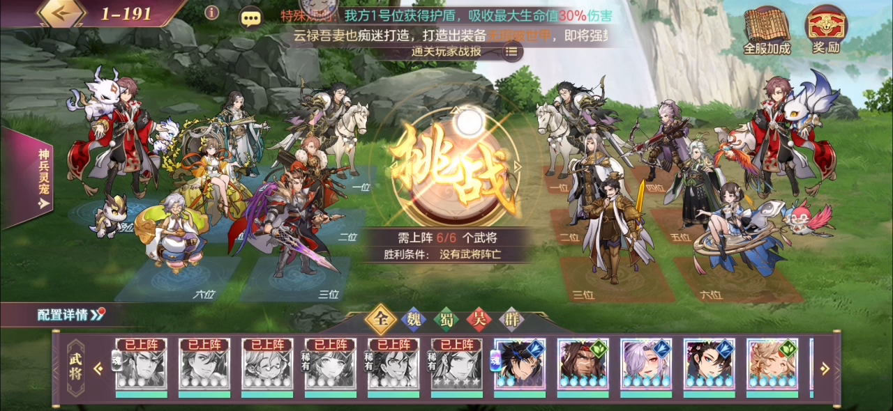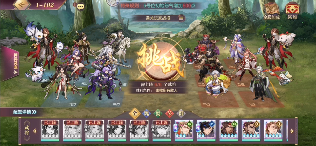 第一阶段总结: 1v1 马超 2v2 马超 吕绮玲 3v3 马超 吕绮玲 姜维 4v4 马超 吕绮玲 姜维 公孙瓒 6v6 公孙瓒 好人曹 华佗 果子 马良 姜维 以上阵容带三个专武,社稷殿蜀群优先点,阵容不过换位置多刷几次,无脑一键。