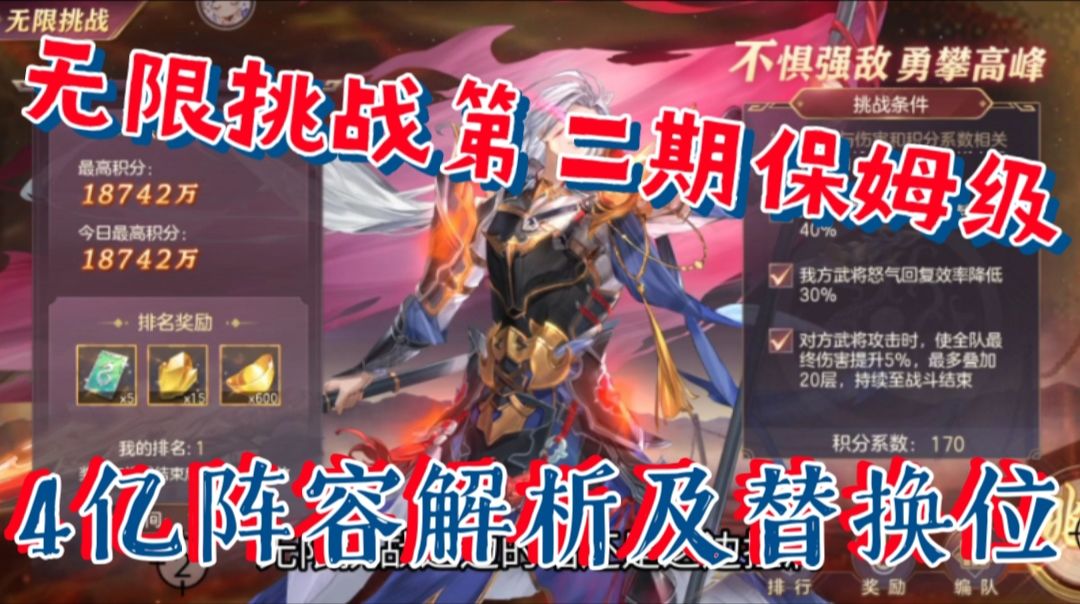 【三国志幻想大陆】无限挑战第二期保姆级,4亿阵容解析及替换位