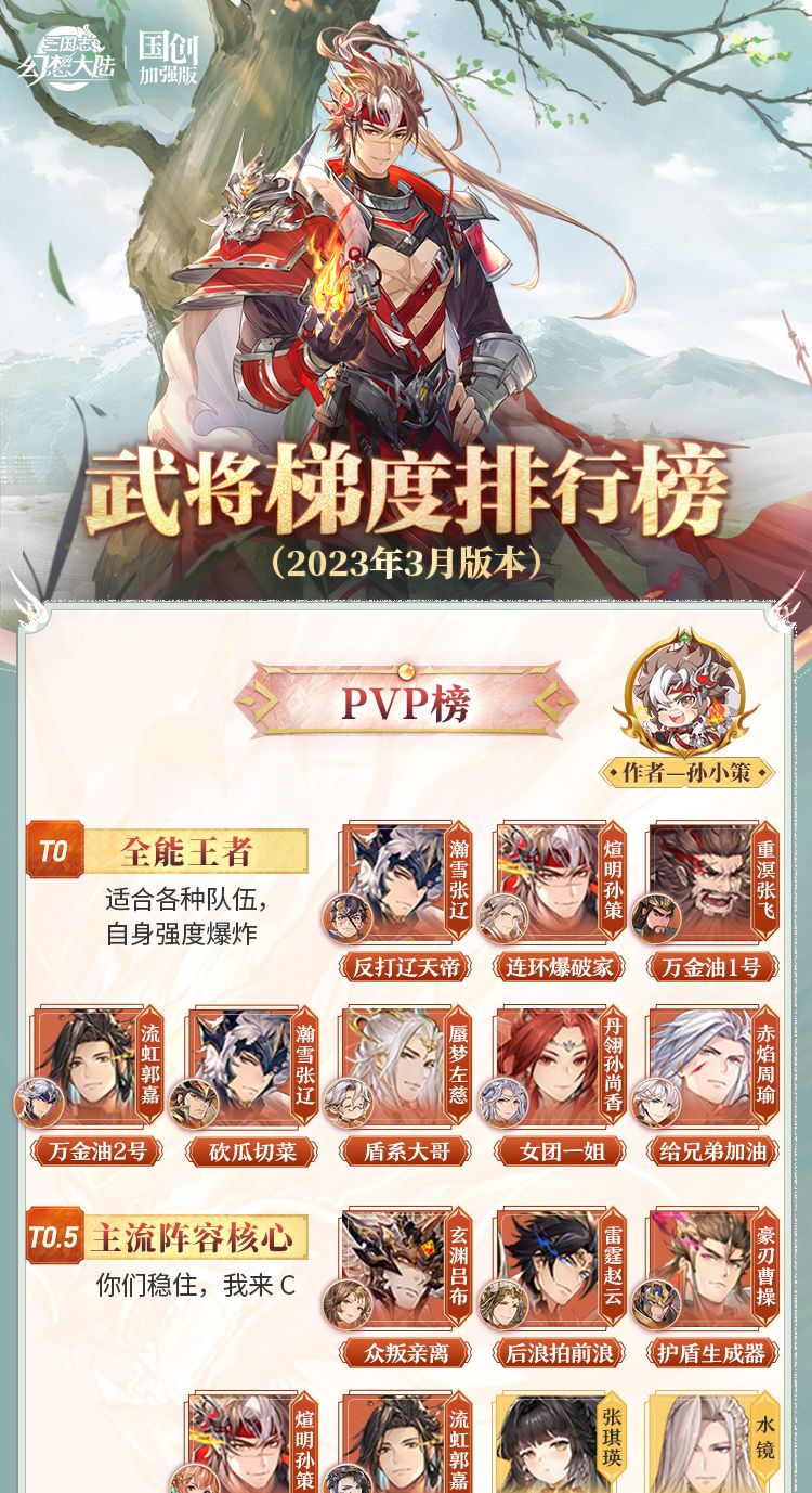 玩家攻略丨谁是PVP全能王?武将梯度排行榜第20弹(PVP篇)