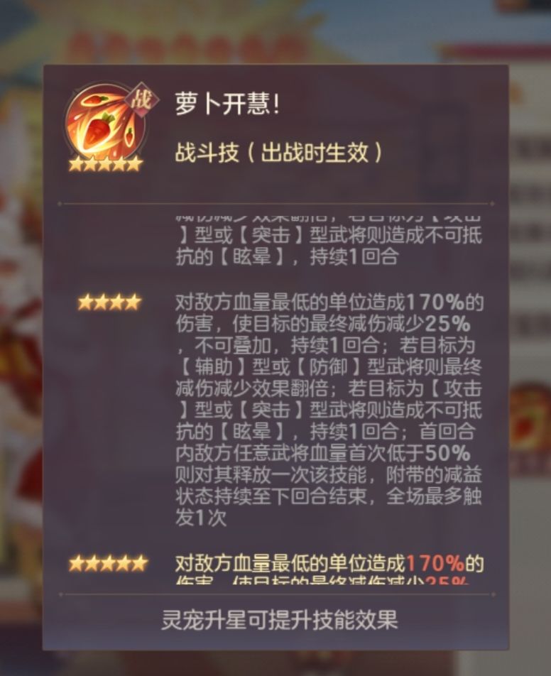 明天下午6点测试结束,现在已经晚上10点半了还没改,大概率已经是最后一版了。 一、卵兔简评: 先给卵兔的强度下个定义吧,强度中等偏上,主战方面首次出现了在出战的情况下压低对面血线达到50%可以直接触发主战的效果,灭队玩家可以作为主战宠,一定程度上改变了灭队无主宠的局面;而助战方面突出一个抬张辽,三改三测,每一版都想尽一切办法把增益往后宫队伍中的男性武将上拐,说是女团专属宠,还不如说是魂辽专属宠