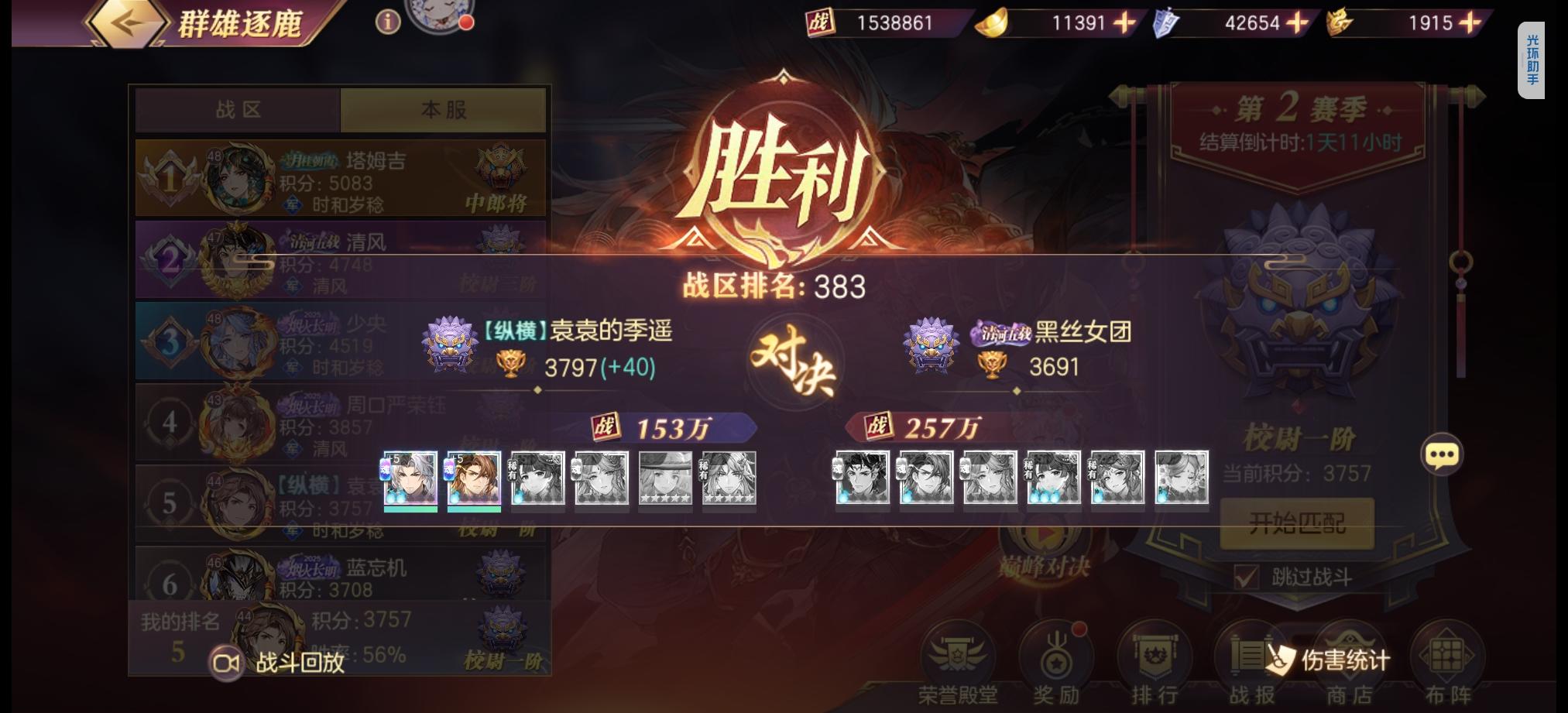 姜维是诸葛果羁绊,孙权是吕蒙羁绊,蔡文姬是阴后羁绊(辛宪英羁绊在三火姜维后可能好用一点)姜维新区很吃增伤,二号位战魂要点满,不然的话,很容易出现打盾,打不死对面,然后盾队也打不死姜维,最后因为人数差而输掉对局。阴后羁绊自动解锁四群,带黄月英就是为了防止触发四吴羁绊,带灵雎也可以。这个号按理说是第四,但是我单纯在测阵容,战力比较摆烂,所以第四是一个3火曹丕,战力差距太大了,不然同战力的话,一火