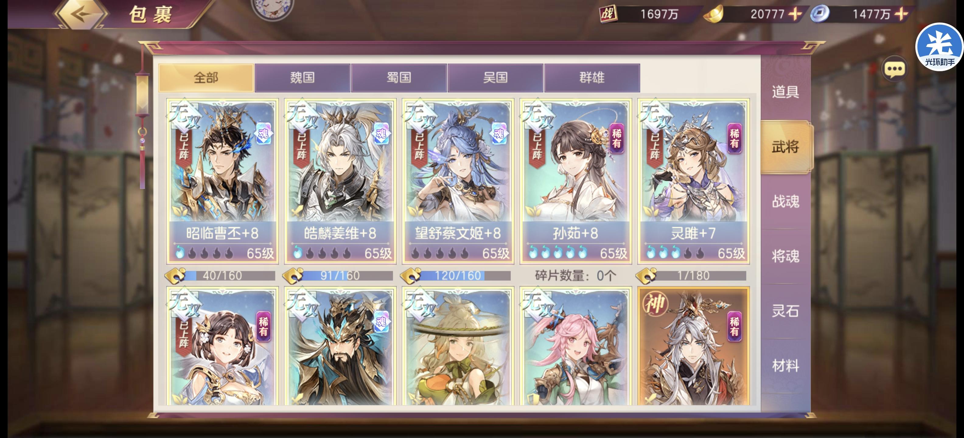 时间: 第832天 坐标:刘备幻想服A1585 1000-1100亿用时:36天 本来PVP阵容可以更早达成1100亿,但是为了不挨打,不得不上绯村剑心,只有一火而且无法进阶命魂,起码低了30亿左右。 目前最大缺口还是命魂武将,特别是张郃(一命),魔将(还是心月狐版本的阵容)打得还没抢得多,别人一刀100亿亿,我是打满4刀一百亿亿,魔窟,刷分都落后一大截,