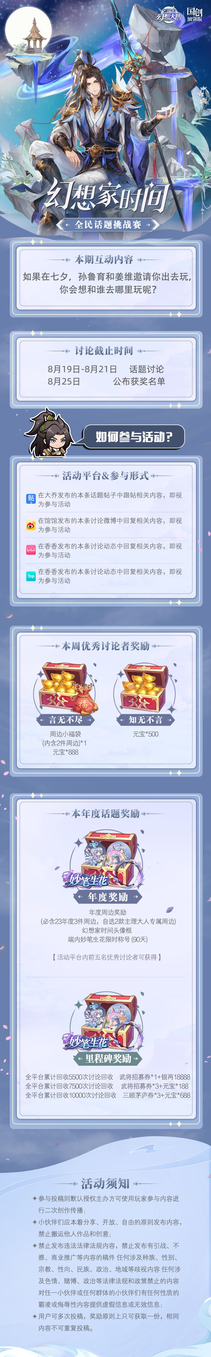【评论留言联动感想,抽史诗级直购皮肤任选*1、魂将皮肤任选*1、888元宝*5】