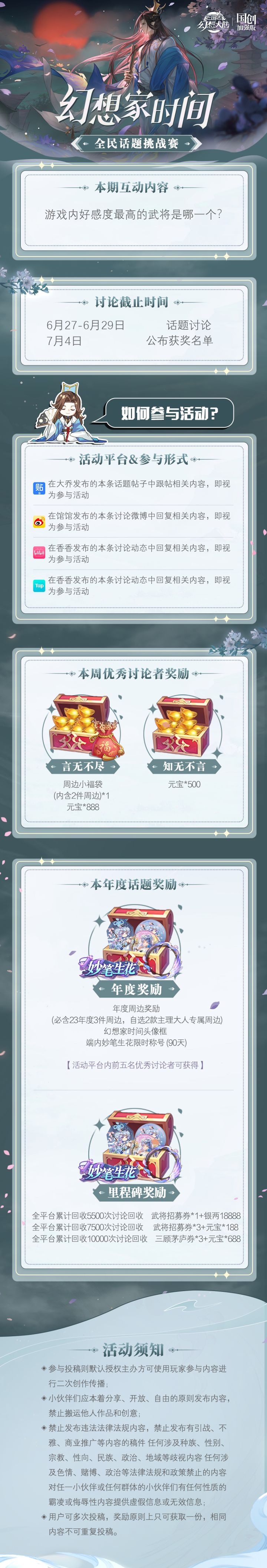 众位武将们为躲避炎炎夏日, 来到一座无人岛上, 将在岛屿上开拓探索、共浴温泉、竞速探索、应援投票, 展开有趣而精彩的夏日大作战! 三幻夏日特别活动“泳装应援大作战”7.19~8.1清凉开启, 海量福利等你领取, 还有“海边靓影”系列泳装限时返场! 快与武将们前往无人岛,清凉一夏吧!#三国志幻想大陆