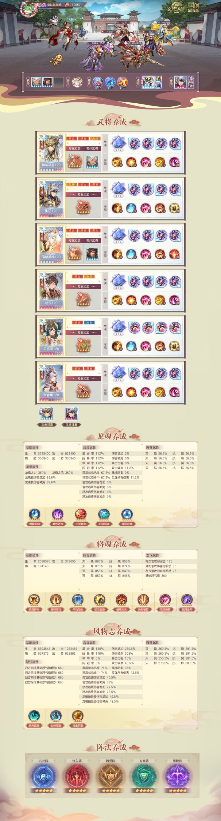 第949天,1400亿-1500亿,历时20天!氪金:6元,区服:A1585(刘备幻想服)今天101抽 10个刘备信物,等北定二阶段换两个升三红,然后换掉张春华(三红太拉了)11个自选信物砸出来一个废物,PVP基本无提升,三红太垃圾,只能等五红。长安昨天繁荣度2.7w,今天5.4w。。。发!发!发!换碎片补了5阶枪灵和4火🐯。张郃三红,小虎一红,PVE算了脱离大部队了,可恶啊,早知道自选信物拉张