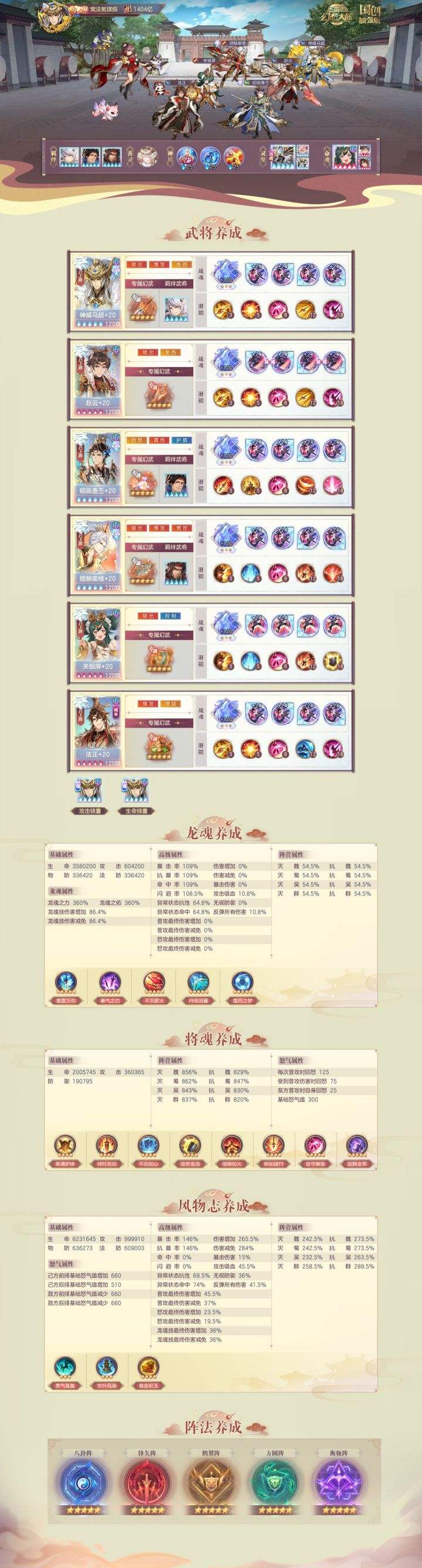 时间:第904天 1300亿-1400亿,用时14天! 氪金:6元 坐标:A1585(刘备幻想服) 今日提升:①今天抽了五火魂马超,250抽,多5碎片,加上活动送的60碎片没领,就是多65碎片。②魂曹丕五火(团购的80碎片)、魂曹操4火。 然后把魂菜鸡和绯村剑心换了下来,这个该死的一火剑心终于可以滚了,看着贼膈应。