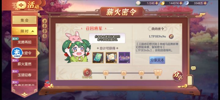 A服薪火密令X2m7G3a9h没领奖励的兄弟快去吧~#三国志幻想大陆 #薪火密令