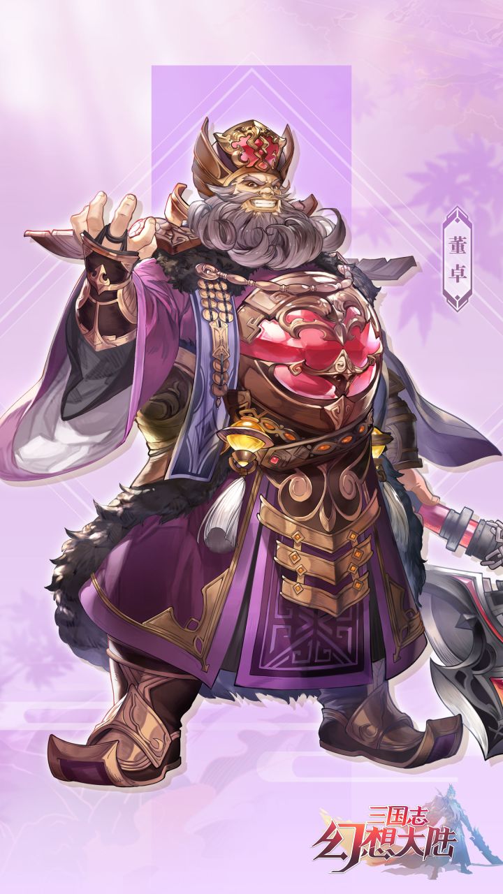 小将军们好~当人们讲到“三国”背景时,常常会以一个人作为开端展开——那就是董卓。那么在《三国志幻想大陆》的世界里,董卓又有着怎样的设定和能力呢?今天就为大家来揭晓~武将立绘↑↑↑长按保存壁纸↑↑↑“大汉天威?哈哈哈哈哈,我的话就是天威!”武将档案图片上传中…◇ 姓名:董卓(字仲颖) ◇◇ 籍贯:陇西(甘肃)◇◇ 性格关键词:暴躁 ◇◇ 原型:东汉末年权臣,西凉军统领,十常侍之