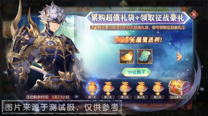 亲爱的小将军:累购超值礼袋,领取征战豪礼!—— 超值累购上线。活动期间内,小将军可在活动界面花费30元购买特惠商品【超值礼袋】。每日5:00将解锁一个【超值礼袋】的购买限制,小将军可以在同一日购买多款已解锁礼包,不限制购买次序。累计完成5个【超值礼袋】的购买,即可开启额外奖励【征战豪礼】。 ■ 活动详情 ■活动时间:2025年3月20日05:00-2025年3月27日04:59 活