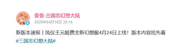 🎲 《三国志幻想大陆》新版本爆料!全新幻想服、新魂将凤仪王元姬定档4月24日 由广州灵犀互动娱乐有限公司自研自发的卡牌手游《三国志幻想大陆》 近日有新信息传来,官方爆料全新版本将于4月24日正式上线,全新魂将 凤仪王元姬 也将同步登场,参与活动即可获得 此外新版本还将同步开启双战区、全新幻想服,此外全新魂将、新活动、返场情人节主题皮肤等内容也将陆续推出 玩家对此反响热烈,不少玩家对王元姬的