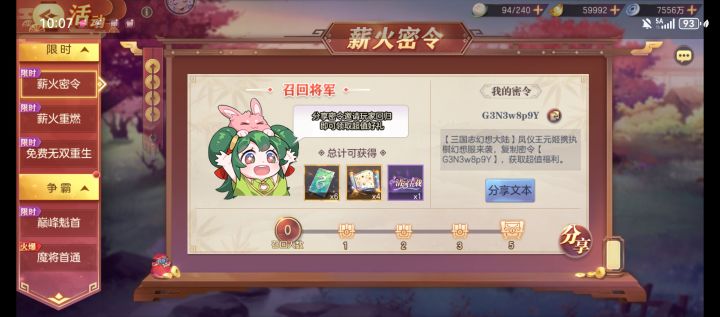 活动里面直接复制黏贴A服密令 d6G4y8R3m123250001002854