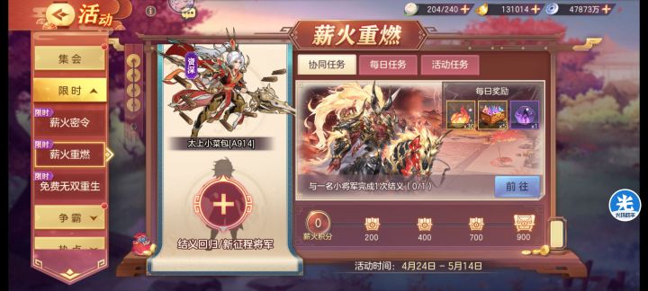 薪火密令:G4e7h3Z6S新手礼包兑换码UYFD-HCRR-UPGJ(只能一次)魂礼包码:代汉称帝、泣血断魂、决胜江陵、胡笳归音、破茧新生、再战清河、命魂现世、龙吟九州四月礼包码:新茶一盏醉春风王元姬服专属礼包码:共庆执棋幻想服执棋幻想服幻想20260424凤仪王元姬凤翎执墨执笔凤阙坤宁掌印凤阙坤宁