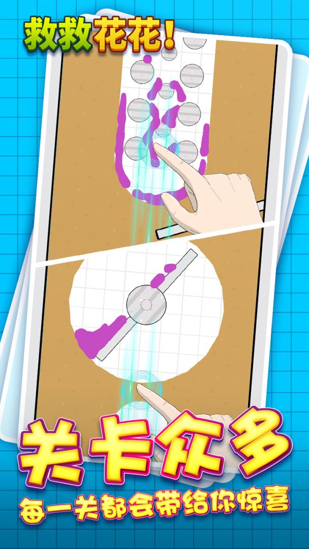 《救救花花》是一款趣味十足的休闲益智游戏。你在游戏中可以感受到动脑的乐趣,帮助游戏中的小花瓶加满珍贵的水资源,种出完美的小花,你需要不断地滑动屏幕,让珍贵的水资源顺着你移动画出来的通道不断地移动冒险。玩法轻松上手且毒性极强,通过手指来开辟路径,让水资源能够成功染色并根据你开辟的路径顺利下落们利用各种物理知识和环境障碍因素来让水资源落入花瓶中。每局积攒的水资源越多,小花开的越灿烂,获取的积分也就越多,更利于解锁后面的关卡。积分会进行累计,在后面的困难关卡中需要累计超过标准才能解锁,根据不同的关卡中...