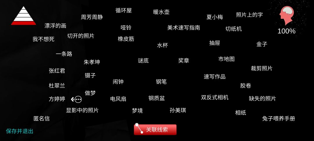 游戏分为四重梦境, 所以本次攻略也按照四个梦境的顺序编写。 ———————————————— 线索图鉴 ———————————————————————— 一重梦境: 即出场的房间 重要物品线索: 1..关联出做梦这条线索后,需要拿钢笔,进去剧情,用钢笔插自己的眼睛,之后才能进去二重梦境。 有点残忍,刘老大真狠人。 2.梦境:钢笔插自己眼睛后,自动获得 线索关联: 1.做梦=哑铃.橡皮筋.镊子.闹钟