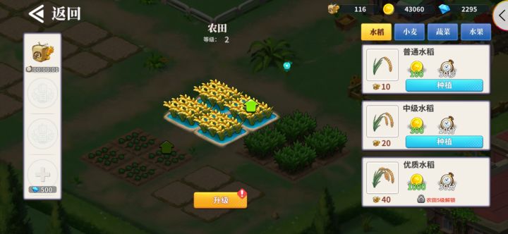 请问下这农场升级有什么用?我30秒花100金可以得10米,有必要花300金和10分钟就得到20米,有谁能告诉我这是图啥吗?还是我的有BUG?