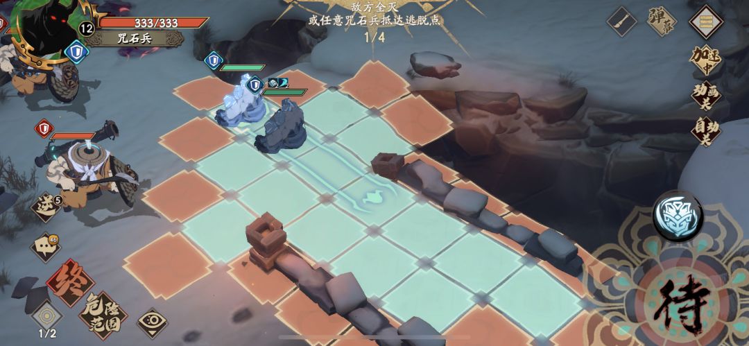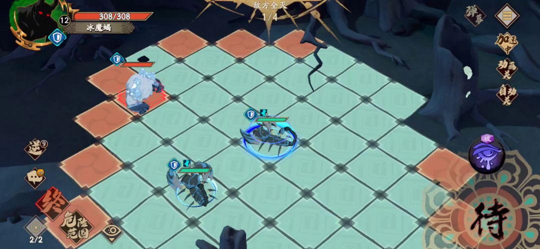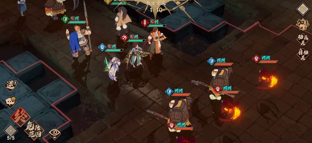 直接抄作业吧 第一步后面那个给前面援护 第二步 血少那个怪最好打一下敌对血少的这个(貌似不打也能反击死懒得测了) 第三步 满血怪走到火里复生 一血小怪丢如图位置 (好像也可以左边一格,懒得测了 我是怕优先引到红怪仇恨 丢如图位置好像绿怪会优先来打你 ) 第四步通关