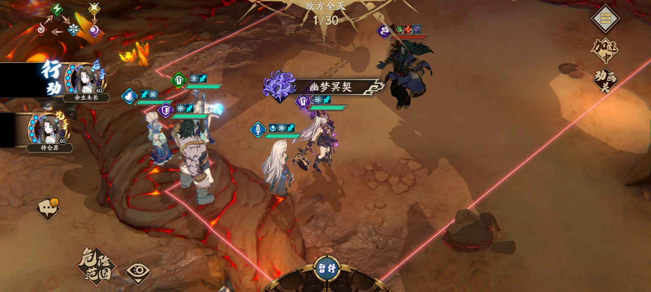 天赋15攻,15物免,射程+1,普攻追击连击。主动对战或被主动攻击在目标1圈造机关,boss站位1圈,打boss在2圈内随机造一个机关,没说是不是在空格造机关。未主动对战可以再动,2格移动,2cd,相当于2回合3动。主动攻击可触发攻击范围1圈内所有荒刃,每个荒刃都造成一次固伤,对战攻击的范围是一个格子,只能触发所选单个格子周围一圈的荒刃,而大招范围是3圈,可以触发4圈范围内所有荒刃。 主动对战增免