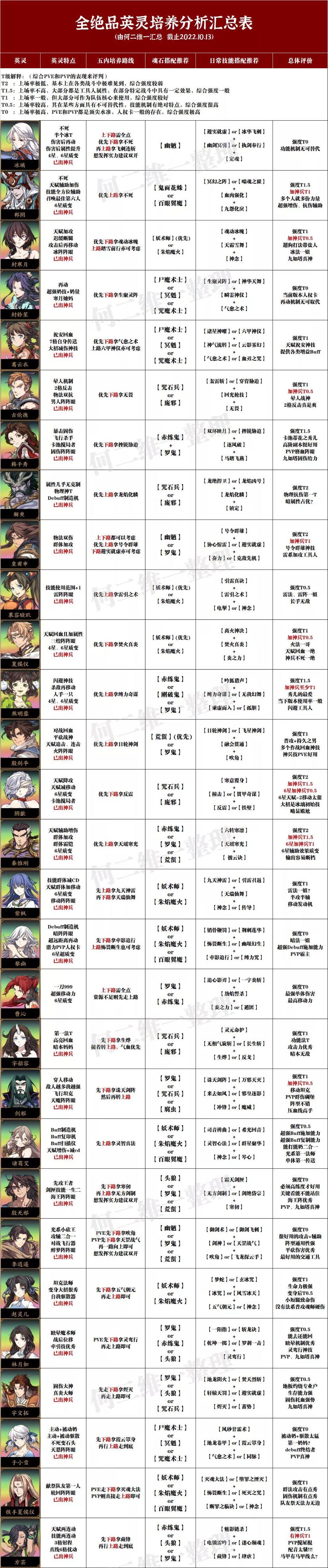 原帖https://bbs.nga.cn/read.php?&tid=35186759&pid=669268375&to=1 最近过年看到不少新人入坑,趁着有空就更新一下榜单,老样子,榜单以整体性为主,囊括大部分情况。后面楼层再慢慢对部分角色进行文字详解其排名位置及变化。 注:同一英灵在不同段位可能存在±0.5梯度误差。当前流火环境以星占贤者为核心的光系主导,以云衣宫主为核心的雷系作辅,炎系反制,