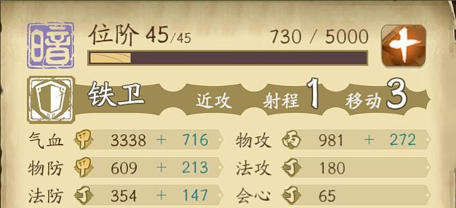解臾是一名将自身物防修炼到极致的铁卫,开启护卫帮队友抵挡攻击是他所最擅长的。 极佳的“甲”成长【物防】和“甲”成长【气血】让解臾在对抗纯物理菜刀队的时候尤其得心应手。在前期开荒推图,敌方绝大多数都是物理攻击单位的时候能让整个过程轻松不少。 【天赋】噬渊龙怒 每次遭受攻击进入战斗,自身物防就能在战斗中额外提高16%(五星), 如果对方身上有“负面有害状态”解臾在主动攻击或反击对方的时候造成伤害也会额