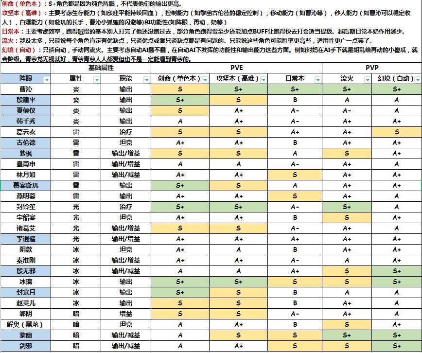 看到最近有不少新人入坑,不知道新手心愿抽啥,这里推荐一下新手心愿需要抽的人物 1、冰璃:必抽,你游看板娘,2回合一次的再动,不俗的输出,以及冰系唯一一个疲弱手,导致她是打火本的必上人选 2、封妈:必抽,你游唯一一个再动奶,再动的含金量在战棋游戏里有多重要我就不说了,目前还是光系环境,搭配大璇玑如虎添翼,2回合一次的再动,谁用谁爽 3、殷建平:必抽,pve火系站桩输出第一人,战前回血以及战后回血,让