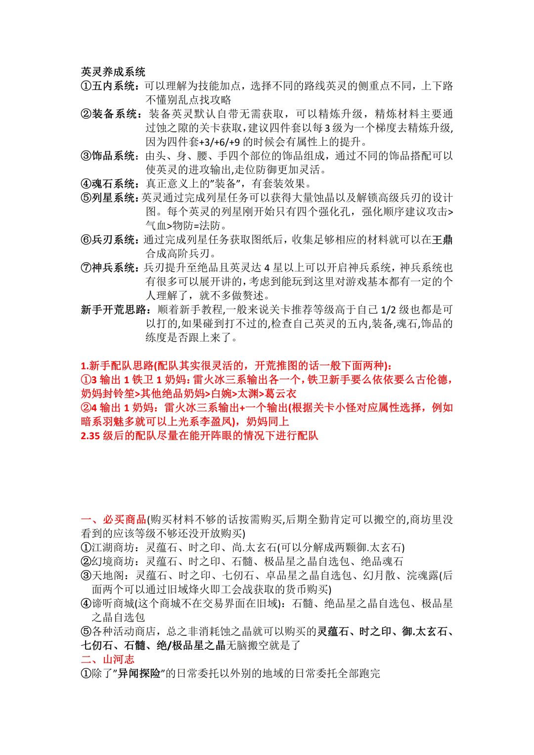 攻略向,教你怎么抽卡配队,魂石,饰品!3.24更新 首先,你要知道这游戏氪金收益比较低,除非氪个几万,几十万的砸,不然你一个大保底,一个月的资源就没了。所以我的攻略就针对零氪,月卡党提供。 另外你需要知道,抽卡不是别上头,是必须不能上头。因为你歪一次就是50-90抽,也就是你半个月到一个月的资源,歪个两三次基本可以弃坑了。而紫龙的概率问题,有很多玩家感觉抽卡做视频有仓检,至于到底有没有,你们可以慢慢感受。反正我遇到过两次双up池连续出一个卡三次,也就是0.4*0.4*0.4,6.4%的小概率事件连续来,这是很多玩家遇到过的遭遇,也是概率造假的理论基础。另外2021.6.16天地劫刚子再临,当时精选池三个卡,只有你缺其中两个或两个以上,你会百分之百抽到刚子哥这种垃绝。最终在大量实锤下紫龙已经亲口承认存在技术问题。所以关于抽卡,请各种新人慎重。 啰嗦这么多现在进去正题: 前期组队,有绝就用,绝的属性比级卡厉害一大截。无脑用绝完事。很多萌新总共就三四个绝,还问啥呢,完全不用考虑的。 到可以开战阵了,好像是30级吧,大概几天就能到,这才需要考虑组队。这个时候就需要有战阵的角色。有战阵的加成会让你厉害一个层次。这里优先考虑几个简单入手的。新手卡池三选一的最好是殷剑平,其次封寒月也能用,抽到古伦德就考虑要不要重开了,毕竟一个月的资源就100抽,一个绝相当于50抽,你前期少半个月资源还是有点难受的。寒月跟剑平都有阵,非常好用。前期可以四输出一奶妈的配置,或者用尉迟良的阵,三输出一t一奶。 现在带阵的卡太多了,所以选择不止我说的这几个,你们懂了原理就可以配自己的队,完全不用怕,前期的怪非常弱,就是给你熟悉游戏和操作的。 过了这几就是中期了,你配队的目标就是每个系要一个人权卡,且尽量到六星就行。如果有两个就更轻松了。 火系曹沁,冰系冰璃,最好再带个封寒月,不然没战阵,雷系不用抽,尉迟是出名的大哥,光系用李逍遥(马上联动复刻)或者剑圣另外需要一个封妈,封妈是整个游戏最强辅助,任何时候抽到不亏,暗系黎幽(一个六星黎幽可以用到pve毕业) 这里优先有我说的这几个角色,然后升到四星就可以了,冰璃优先到6,6星冰璃让你游戏体验直线上升。曹沁黎幽也厉害,但四星五星就很好用了。这个阶段就是推图,推时之隙,三途川,创命,灵脉,死命推就完事了。 这个阶段特别提一下,奶妈可以拉送的白琬,或者抽到太渊也可以拉。白琬是平时推图好用,有神睿,太渊是推创命好用,这两卡只管拉起来,也是可以用到毕业的。期间还有韩无砂,阳寰也可以适当拉,前期越级打怪的非常好的帮手,也是可以用到毕业。 过了这个阶段大概就是要卡创命了,创命通关配置 火系高星曹沁+剑平或者夏侯仪或者云襄,奶妈太渊或者封妈,t依依。曹沁五星后期六星,其他人四星就行 冰系六星冰璃,剩下寒月或者殷无邪,有赵灵儿也行,打火创不要带t,纯靠练度,十回合打不死就gg,最多11回合。 雷系高星尉迟良,剩下带璇玑或者紫枫都行,t古伦德,古伦德不是无用,事实上他还是比较厉害的,但前期有点弱,奶妈太渊,封妈,小宫主其中一个就行了。 暗系,剑圣,李逍遥,毛毛任何一个高星就行,其余人辅助,不要t,奶妈封妈加白琬。如果你就一个光绝或者没有光绝,小师叔,李迎风,或者用高星的冰璃,黎幽都是可以的。 如果你已经玩到这里,基本就是中后期了,pve的终配可以告诉你了。 冰系冰璃六星,殷无邪五星(六星更舒服),封寒月四星,于小雪四星,其中小雪是联动角色,人权卡,必抽。寒月开神兵后变简直神卡。 火系曹沁六星,殷剑平四星,夏侯仪四星,宇文拓四星,宇文是联动角色,虽然不是必抽,但是他非常强大,有他没他是两个游戏体验。 雷系尉迟良六星,古伦德四星,璇玑或者紫枫四星,小宫主四星。其中紫枫可以高星,她是游戏里面一直被低估的角色,四星紫枫比六星璇玑伤害还高。新玩家可以等紫枫神兵出来了再看,一个神兵好不好就是绝对标准。 光系李逍遥,剑圣,毛毛随便谁到六,其他的有个四星五星都行,高皇君刚出来,好不好用不知道。封妈四星 暗系又叫黎幽无双传,她一个人六星就能通九如塔,但有溪哥能让你更轻松。郸阴有一个三星就行,辅助好用。召佑四到五星就行,玩pvp可以升六。 最后提醒一下,我说的角色里面,四星五星是最低配置,你能够到六星当然更好更舒服。另外目前来看有几个非常废的存在,如果前期抽到建议重开,黑龙,大师兄,铁手夏侯仪,目前来看无论pve还是pvp都没什么大用,铁夏侯打pvp还行。联动角色里面,赵灵儿跟林月如都不是必须,而且不厉害,有爱可以抽一个种子,其中月如pvp能用