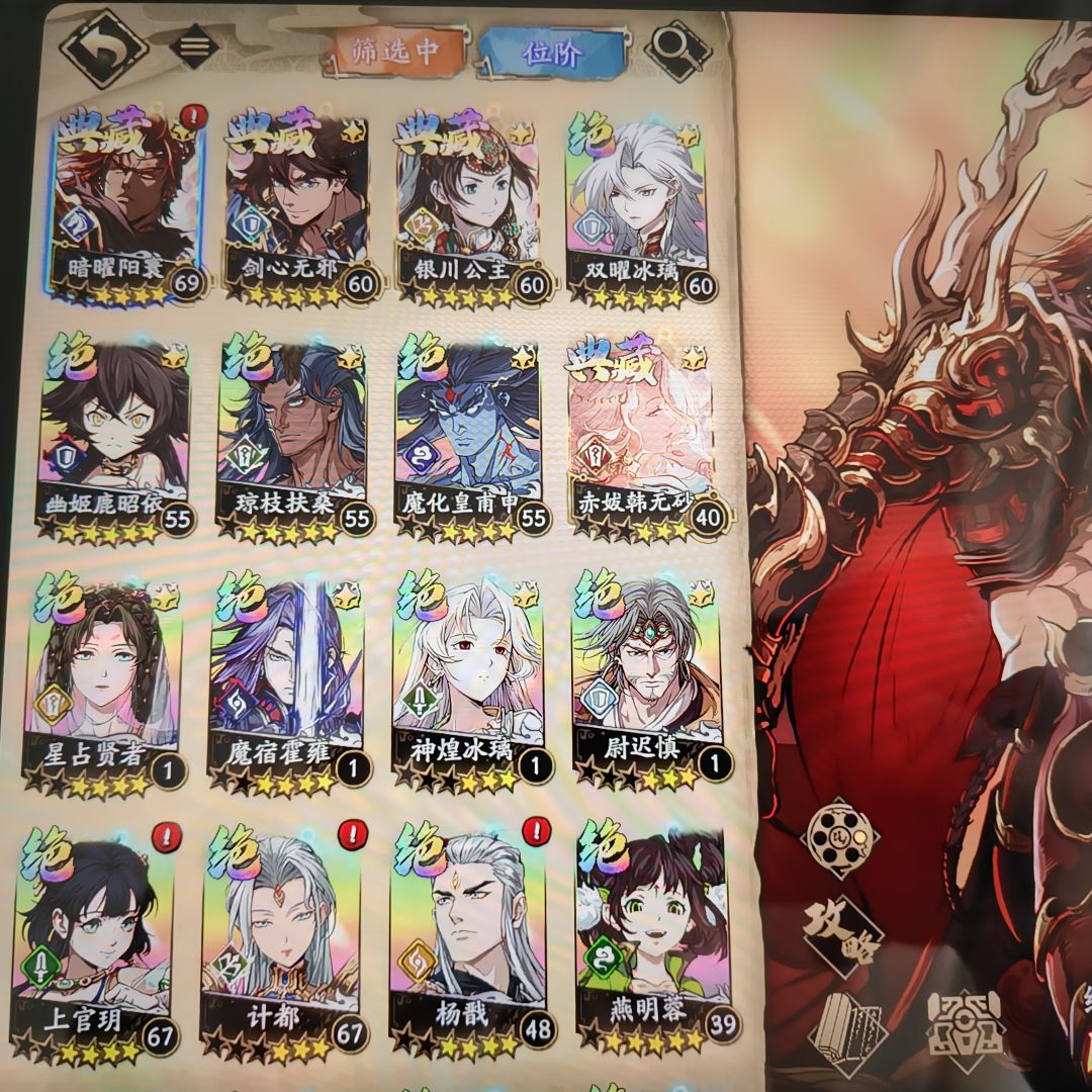 卡牌类游戏玩儿过不少,不知道天地劫的水有多深,所以先选择当个月卡党,目前252抽,冰璃、夏侯、璇玑、封寒月、葛云衣、皇甫申、燕明蓉7绝,抽卡过程如下: 冰璃池:1次,冰璃×1; 夏侯池:16次,皇甫申×1;葛云衣×2;夏侯×1; 璇玑池:6次,璇玑×1; 新手池:封寒月;绿狐狸送的 每日一抽:没有中过奖 总共就刷过3个初始号,这是其中的第二个,也是唯一一个第一发10连就出货的号,开了召唤我会先抽冰