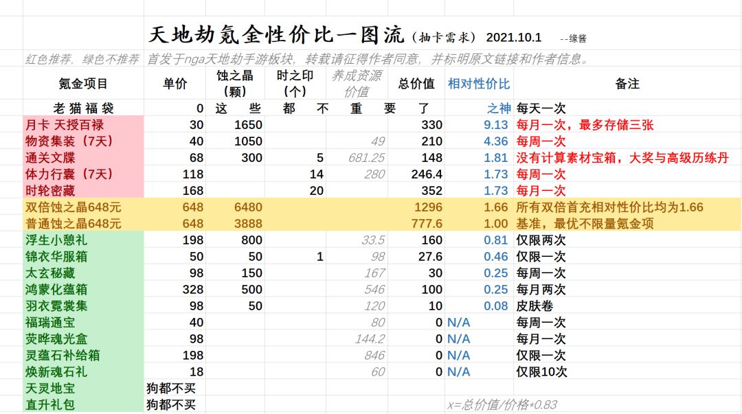 [氪金指南]氪金性价比一图流(21年10月) (全需求&抽卡需求双版本表格)