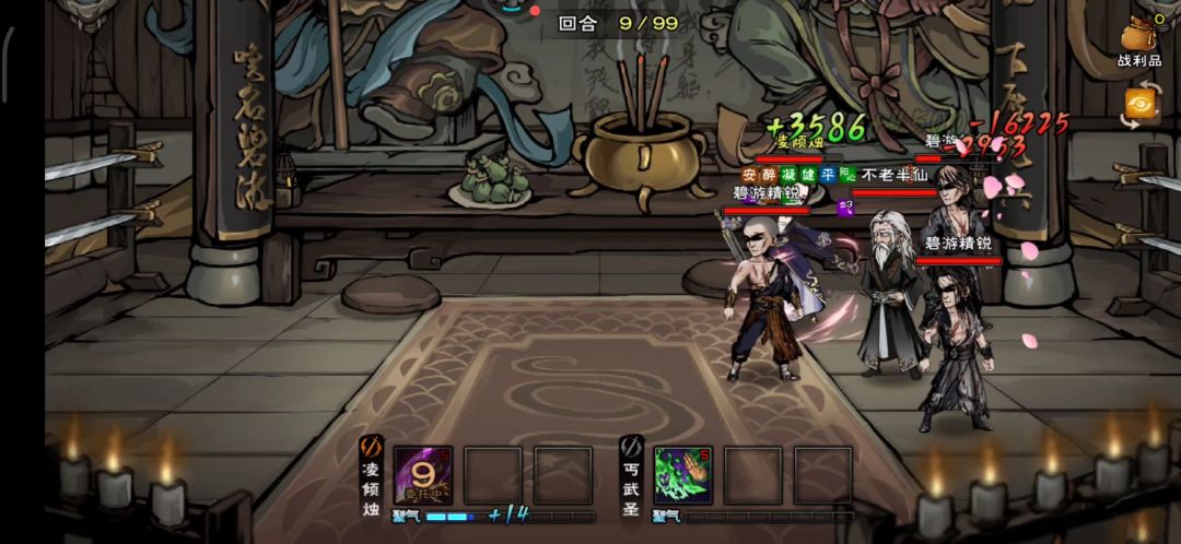 目前的法宝配置 旗扇20 弓18 葫芦塔15 法宝升级建议直接拉满旗扇,方便通关目前所有江湖本,不要平均升级,新法宝目前没用处