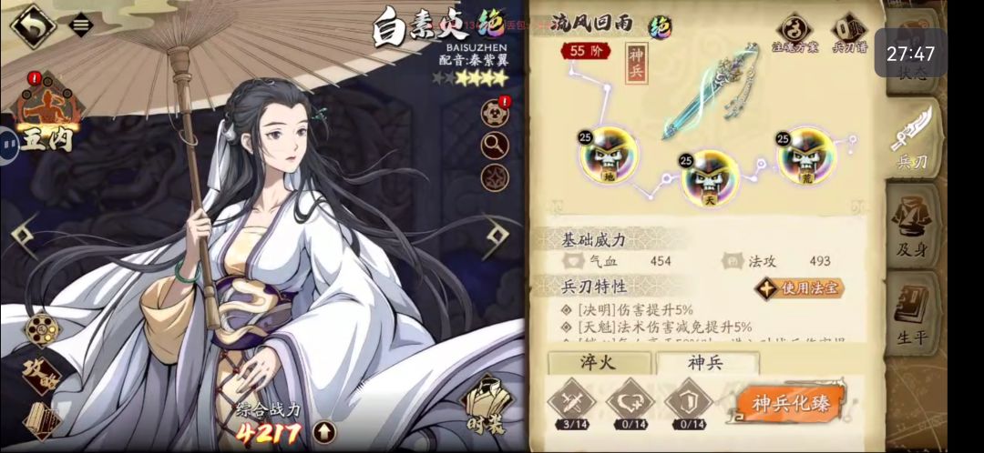 1.白素贞神兵开了,咋没星之晶显示 2.当初练卡该先看下列星的,某些角色开神兵还得手打奇遇。 3.石髓耗光了,男主神兵卡在蚀之隙神魔宝箱,不会砍完宝箱还得等石髓吧。 4.给瑶空用了个60级金丹,然后神兵卡英灵在不够四星了,开始跑片。