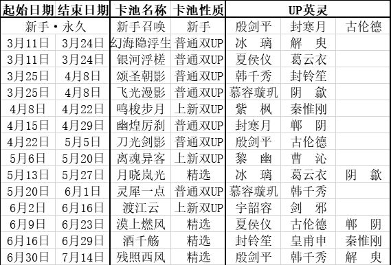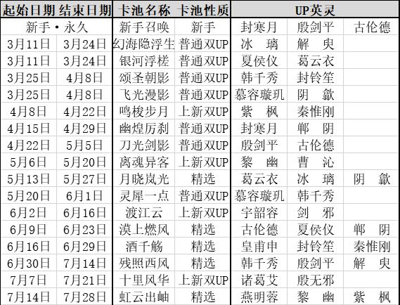 天地劫正式服卡池统计(2021.7.14更新)