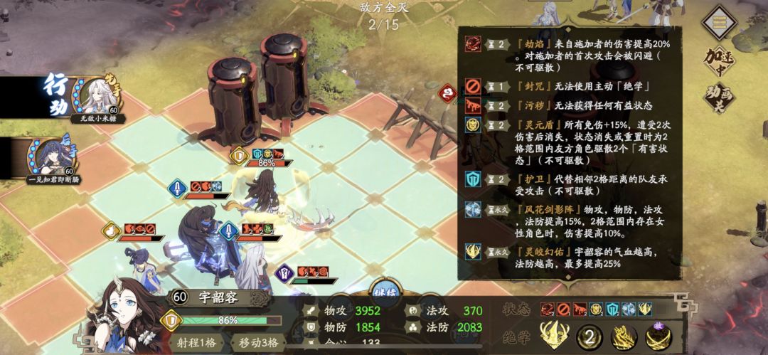 天地劫幽城再临中殷剑平是一个很强的角色,天地劫殷剑平加点推荐:主点中路魔,副点上路魂,后期有富裕可以再点下路迅,殷剑平作为物理近战的侠客,最大特点是有着很不错的自我战后恢复续航能力,不但有着甲成长的高物攻,还有甲成长的高气血,作为输出型英灵爆发力和生存力都很优秀。 殷剑平技能推荐:无方飞剑+日轮神剑+移形:2个2CD主动攻击技能交错使用,可以更多的频繁利用技能攻击,缺点是日轮神剑处于CD的时候没有