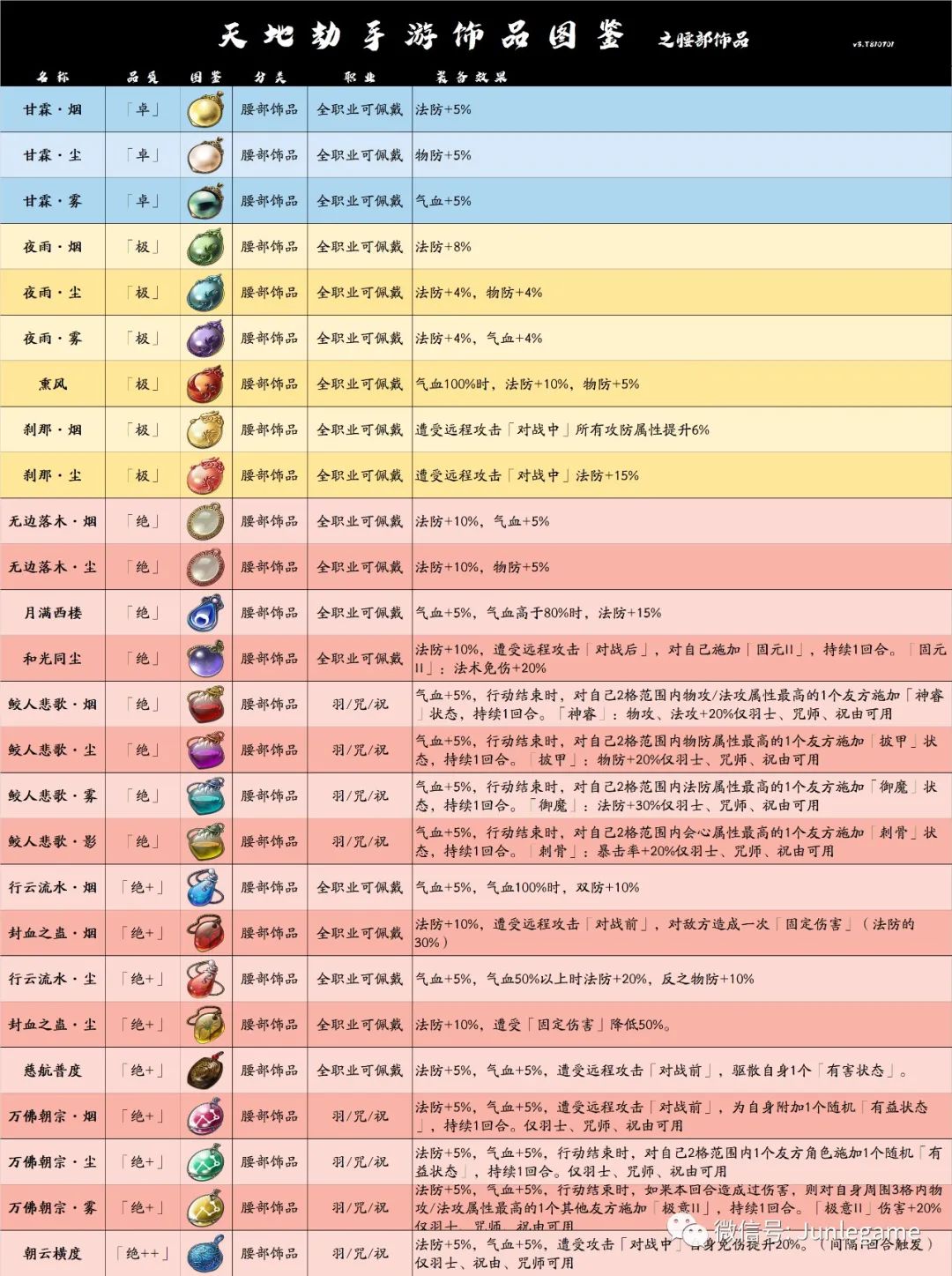 数据贴|新版151个饰品全图鉴~108SSR绝&34SR极&9卓~天地劫手游