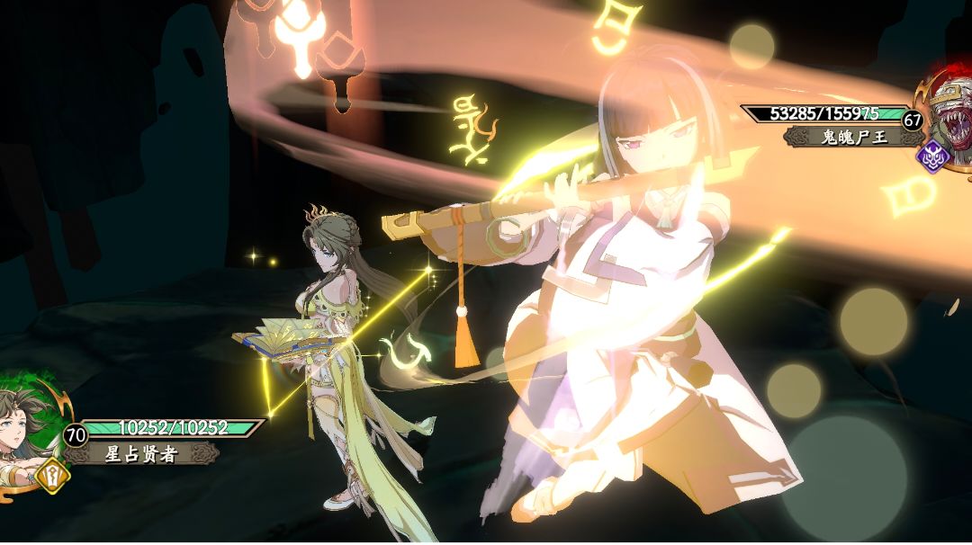 带虞兮的天赋反击给星占接敌加成,确保即便配置较低的助战星占贤者,也能靠反击干掉至少两只BOSS召唤出的小怪,减少清怪消耗的轮次 注意BOSS的召唤技能即将冷却完毕回合的处理方式,要确保星占贤者挂上 愈合 状态,才能顶得住三只小怪的围殴而不倒。摇光给的buff比较随机,在准备接敌的回合确认星占头上的buff,没有愈合状态的话让封玲笙手动挂一个,不要贪 回合数很充足,小怪的处理比较灵活,容错率是很高的