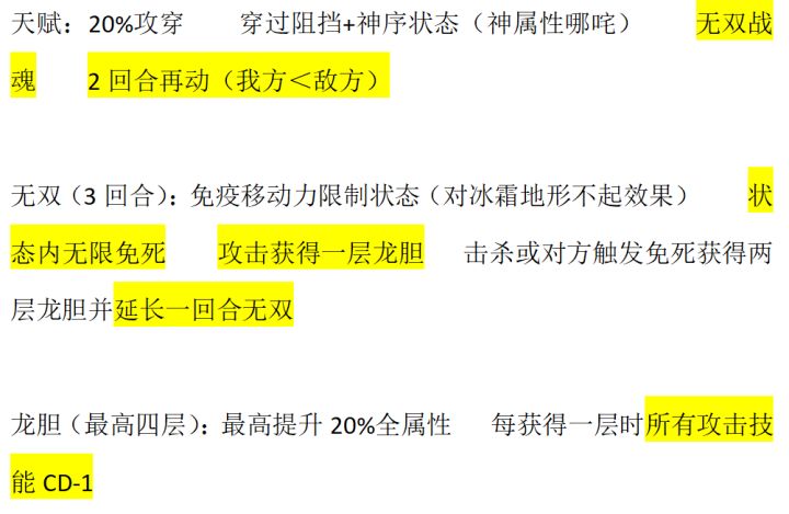 天赋给得很多,但问题也很明显,需要连动连杀,三次没有杀到敌人就会掉出无双,要求很高,然后过T技能是没有的,配合龙胆减CD要杀人可以,就是很考验操作和思路,还有千万别被幽冰璃大寒月幽封什么的给逮住两次。