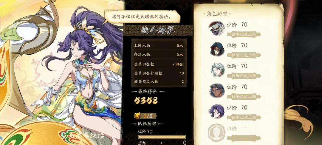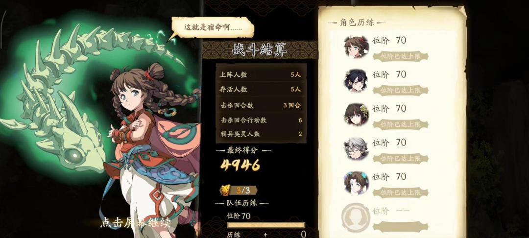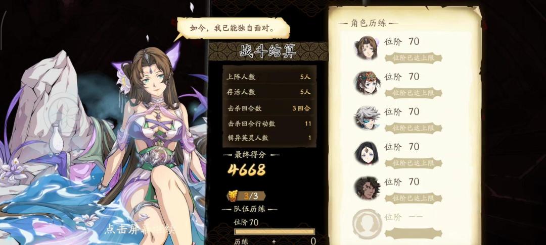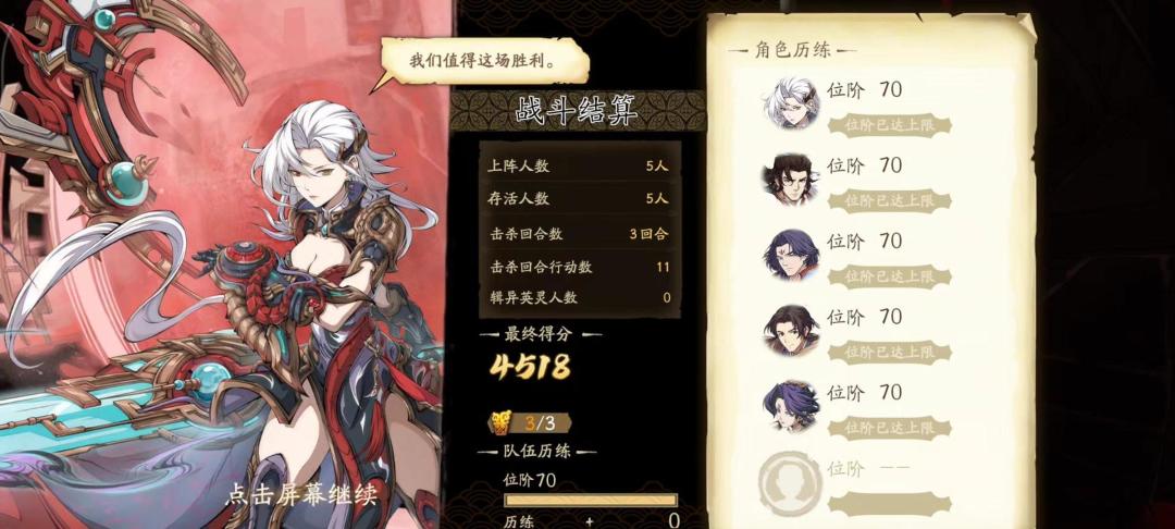 有一个随机点,大璇玑的追伤要有2下打到同一把小剑上。 第二回合后面可以继续抢伤害,第三回合应该也能打完,我打的时候保守点,选择第三回合吃小剑,也不想重打一次了。 PS:作为从小玩单机的人,对主角能打的游戏好感度还是高一点,现在的手游太多废物主角了。