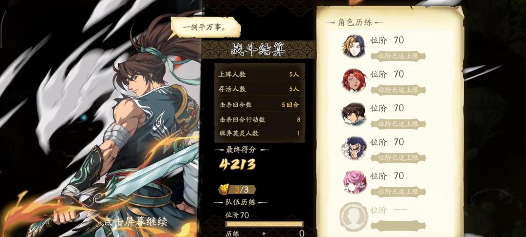 火砂、建平6星满练,萧熇4星3线,云襄4星2.5线,玉觞3星2线。