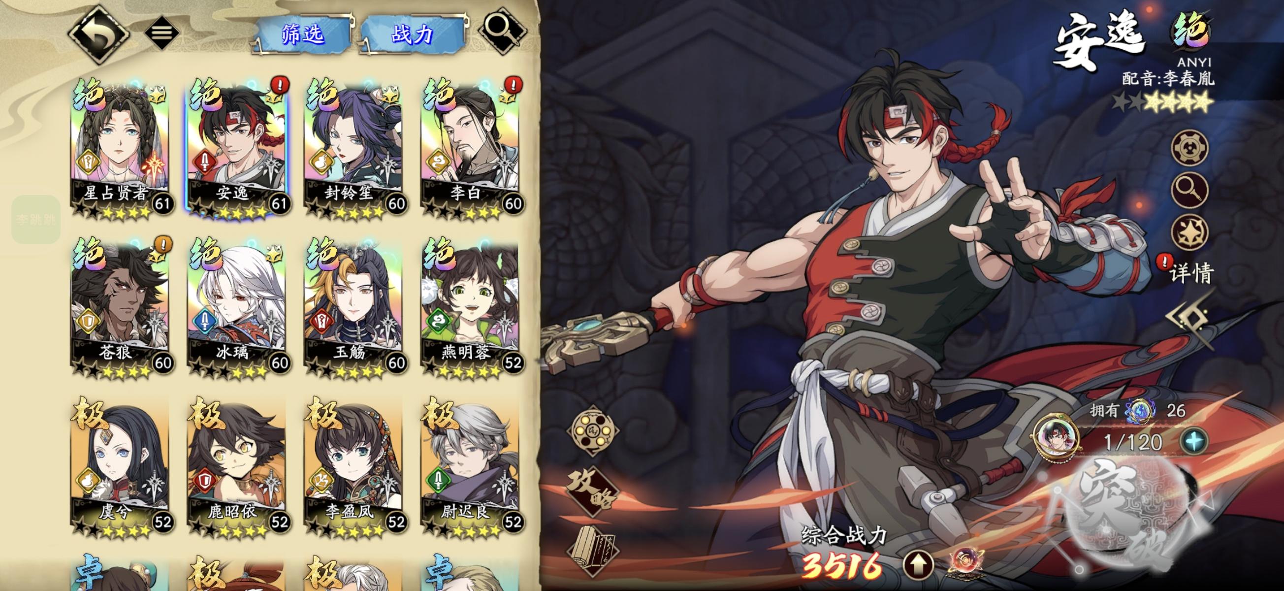 双十一自选入坑,现在67级了,光队差典藏瑜兮和幽波旬,没有主c,火自选抽到了安逸,上元抽出来了感觉不强,推图就靠扶桑了,感觉打的有点慢。接下来是不是养安逸去替换上元和李白其中一个作为主c推图呢?但是看论坛说安逸3c 被淘汰了?还是等周三的暗骑兵抽出来作为主c?