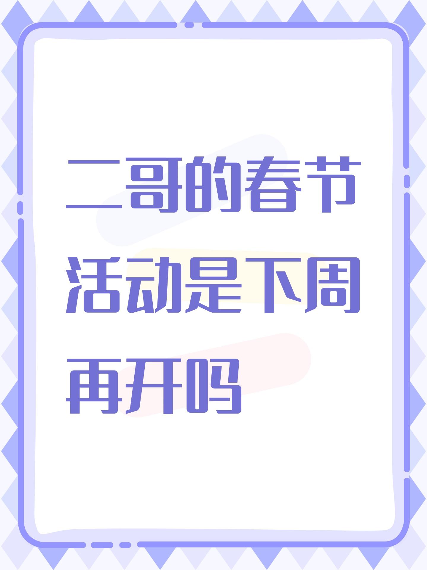 二哥的春节活动是下周再开吗