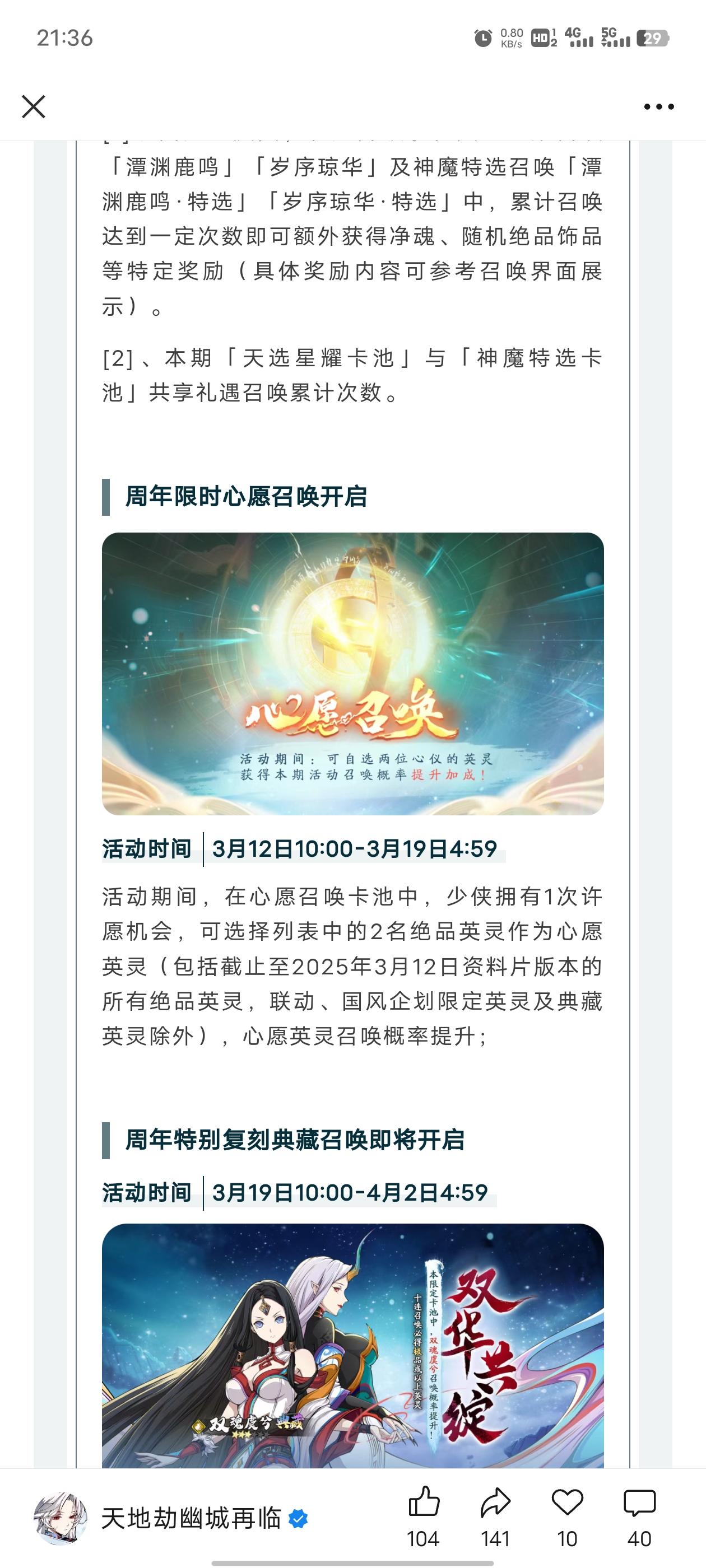 回坑新号是真的折磨,什么都没有,就一个幽默骑马人,根本不想抽,现在还是冰池子。。过年赶紧把赵云火蛇抬出来吧,不然又只能周年搞个星占苍狼,前面什么都没得抽,现在也就抽抽覆云和心愿池,还好现在跨区助战无限不然图都不好推,不过没卡池有点无聊一百多个饼和一万六石头,三百抽不知道干嘛,想抽普池歪角色,但是现在池子人太多了,等歪概率好小,怕到时候没歪倒直接小丑了🤡