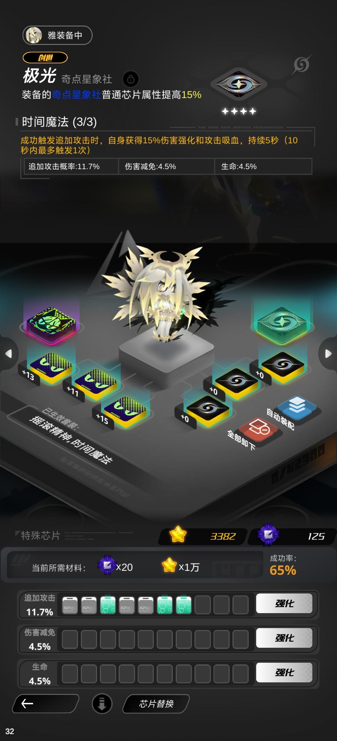本来芯片获取就难,竞技场20000积分要攒,一天赚500,周奖励2000得半个月才能换一个,结果强化全歪。芯片关最高紫,打一关分解的碎片还没加速多,食之无味弃之可惜。商店兑换修复前还能出红,修复后100发别说红了,金的都没有。总结:芯片获取难,拿到也容易歪属性,属性没歪强化也得歪。要一个有用的芯片得祖上烧高香