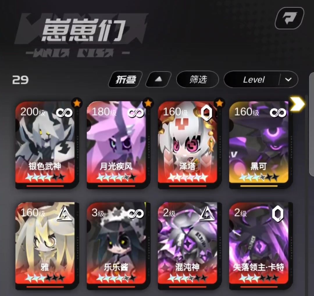 ⚠️本帖仅讨论单c泽塔和其余角色尽量低练度的高难挂机推图,不参与任何角色强度比较,请各位理性讨论⚠️单养泽塔,其它角色花费少量资源,可挂机推图,推图上限取决于泽塔练度😗快速毕业:低情商+可可+6幸运星(建议没有红色芯片时使用)😙完全毕业:低情商+可可+3幸运星+3木马(得全红)主词条生命(红片至少1100血才升,除非你没有)副词条:破甲>暴击率>攻速≈爆伤≈生命目前最优解