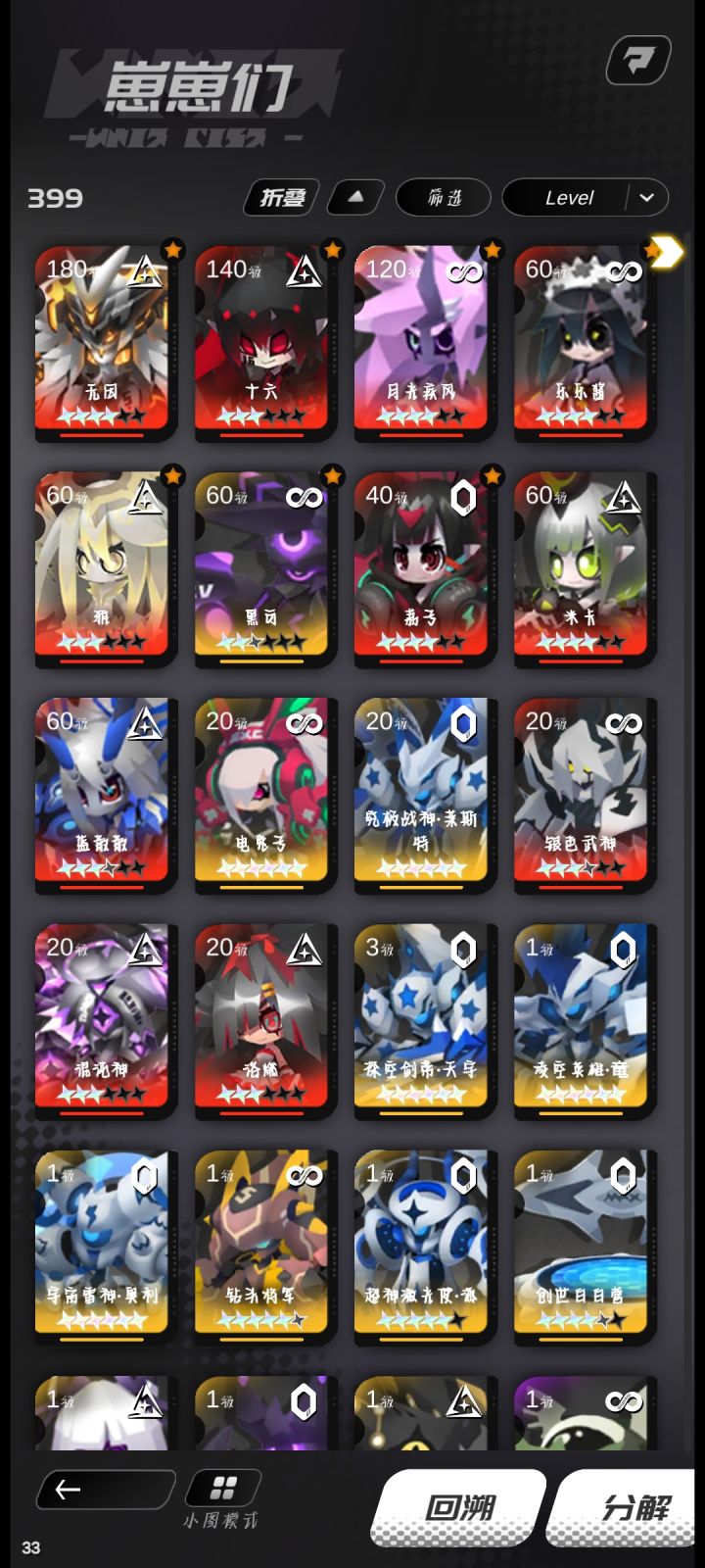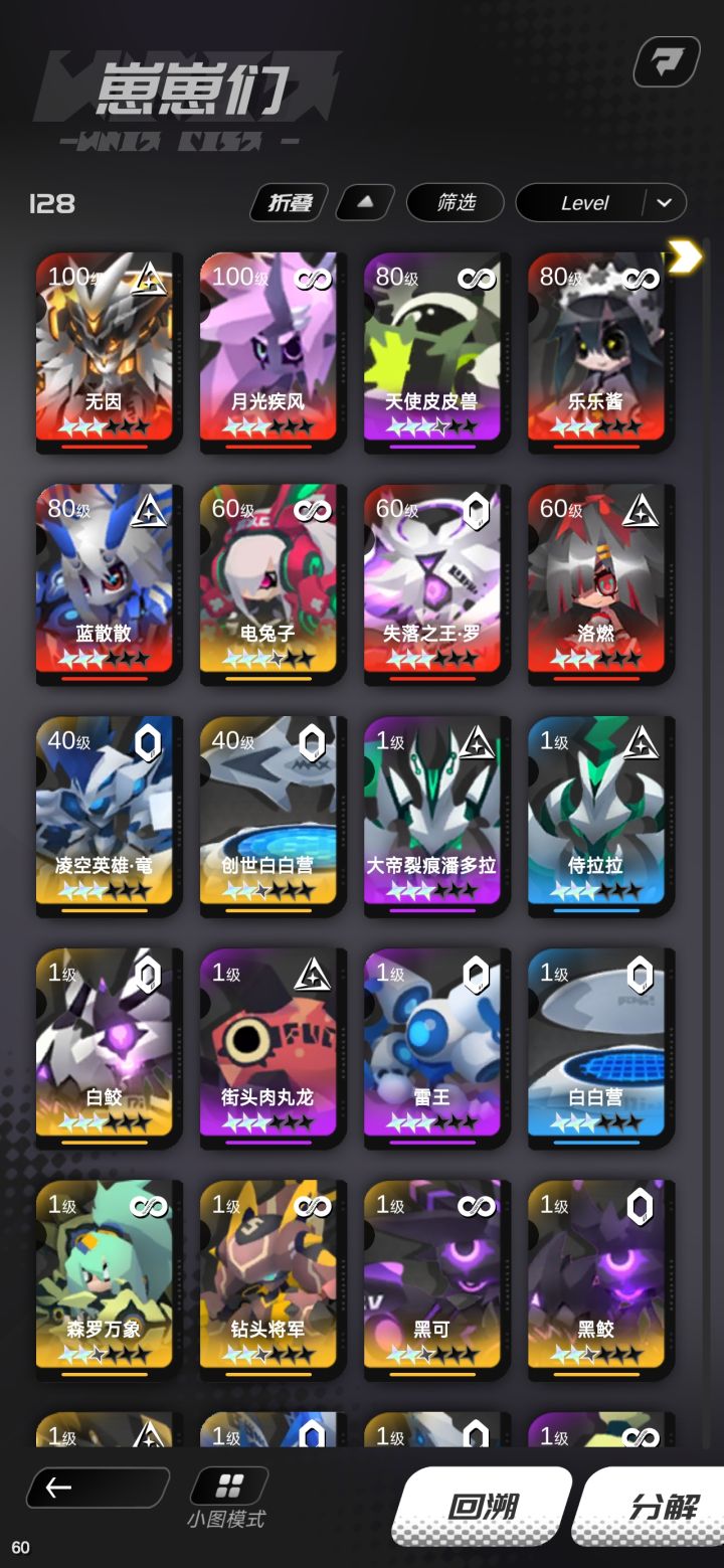 我是3区的,现在121级了,玩了3个多月,100多天了 ,充了也有1000多,我每天都上线做日常,以前芯片难搞,等级难升,熬熬就过去了,现在好不容易步入养老阶段,结果以前死命攒的芯片直接低一档,无因也直接砍废,这游戏实在是太让人失望了,我是蹦战纪的老玩家,看到怪力猫重新出游戏才来玩的,哪怕中间那么多的bug我也玩下去了,现在改的这叫什么,白瞎我的精力时间跟金钱了。失望。