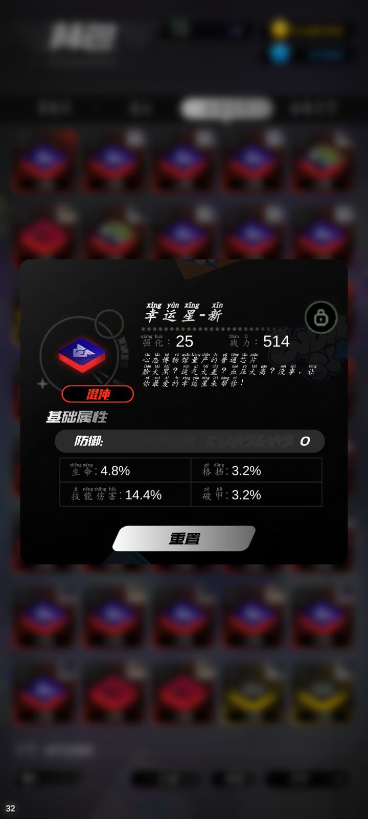 战令给的自选红芯片,描述的是主副属性都是满值,然后给我来个主属性0,副属性除了技伤,其他3个没跳过,是不是满值不清楚