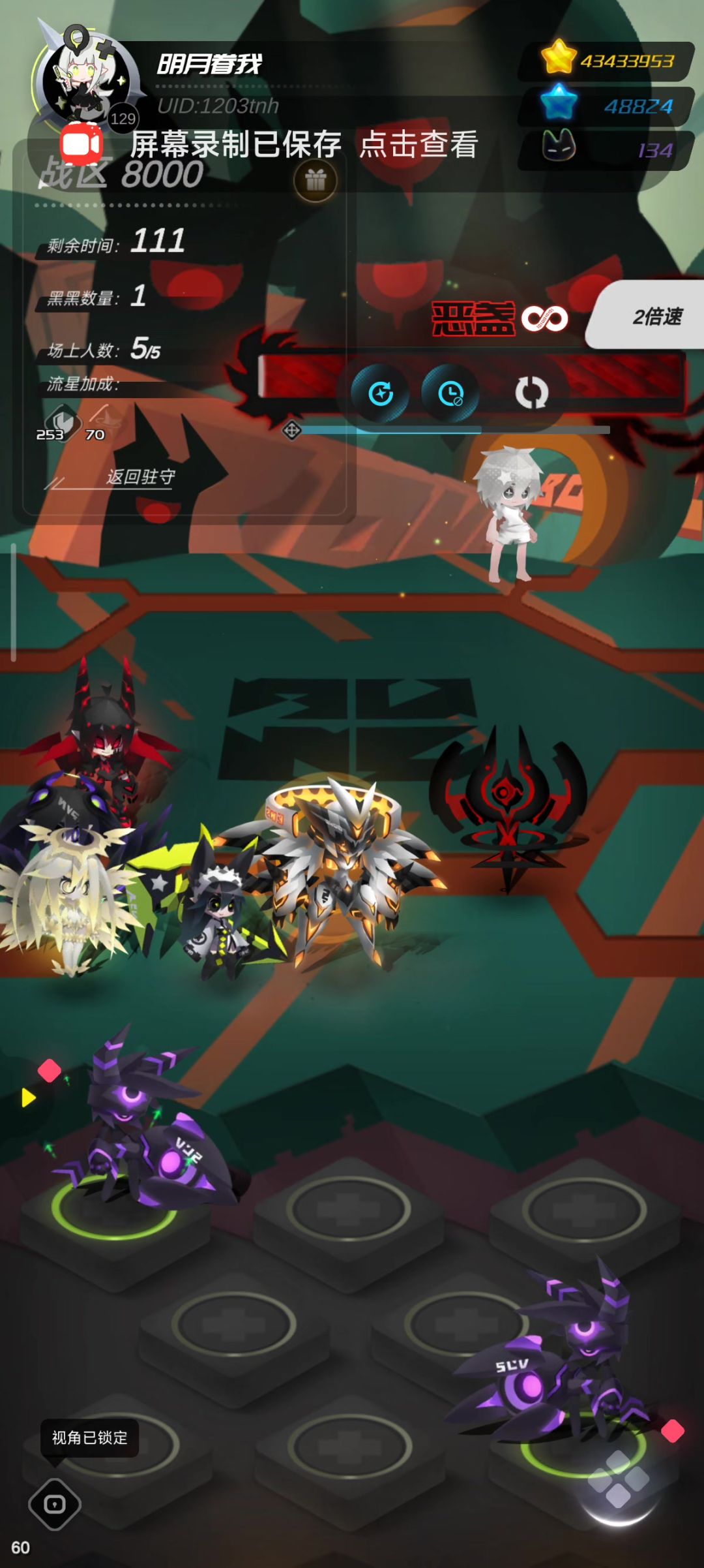 4w石头7只沁,充了个月卡开启2倍速花两天从4200打到5000,估计后面不会推了,无因大人也不能做到纯挂机,要看准时机放时停,连着打一个小时都能睡着了