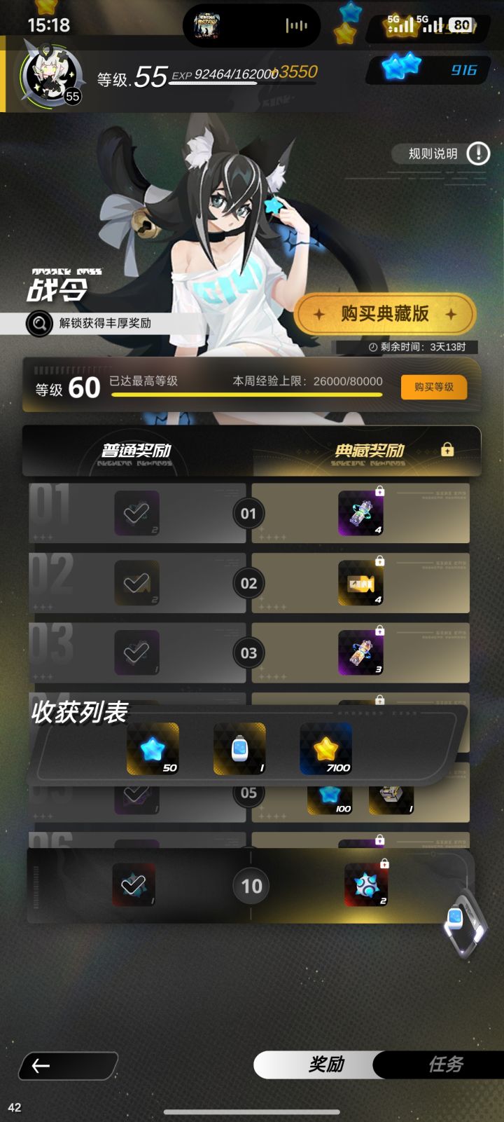 咋这么多bug啊喂,这边更新后任务都能再领一遍直接60级了,所以寻思直接把战令拿下东西拿了,结果到现在也没到