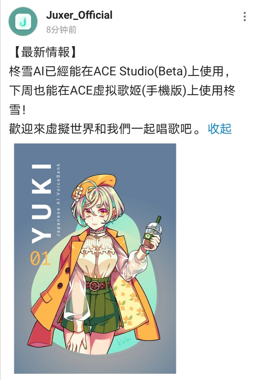 [快讯] 日语歌姬「柊雪」将于下周上线ACE虚拟歌姬APP