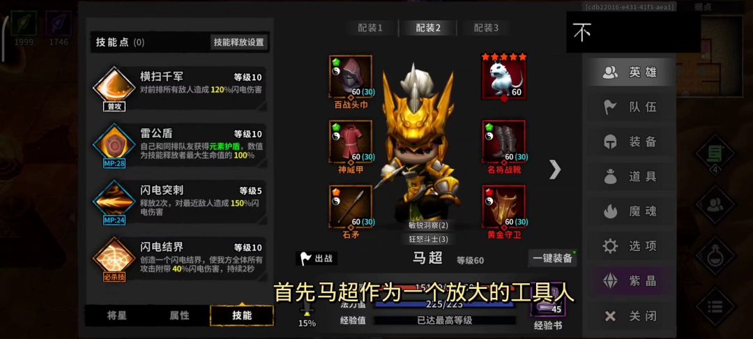 前言:此阵容将黄忠队长换成诸葛拉条,相比用黄忠队长的好处是吕布可以出手更多次,更适合新手低配爬塔。 注意事项:新手抄作业请认准一个抄.每个攻略的攻速跟兔子魂的速度都是根据各自阵容搭配的,不要同时抄多个攻略,每个攻略之间的配置大多不通用的,下文中会把核心注意事项用红色字体标注出来, 每次进图前吃怒气药!!! 每次进图前吃怒气药!!! 每次进图前吃怒气药!!! 马超: 马超核心要求:攻速1.3,符文敏